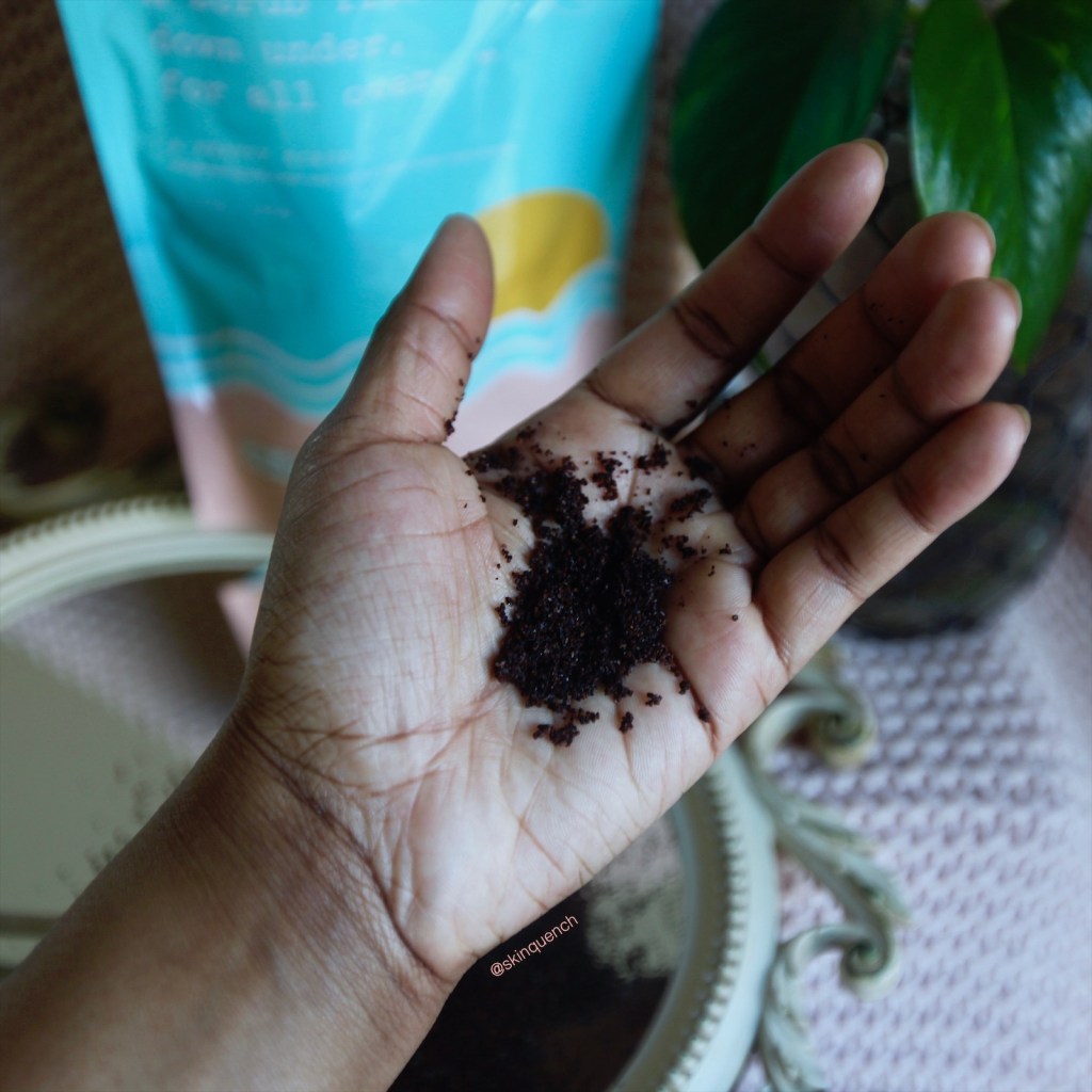 Out of all the other coffee scrubs, I chose this beauty. I love that it’s made with ingredients that are native to Australia like: finger lime, eucalyptus, macadamia oil and kakadu plum. The finger lime and kakadu plum have naturally occurring AHAs, to aid in exfoliation. Other great ingredients are coffee grounds, sweet almond oil, sugar, lemon peel oil, lime caviar extract and vitamin E. This product smells similar to the Original Coffee Scrub, just with a hint of citrus.